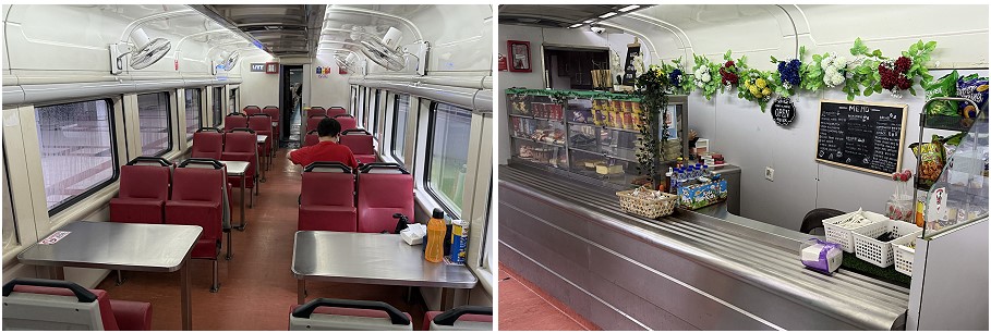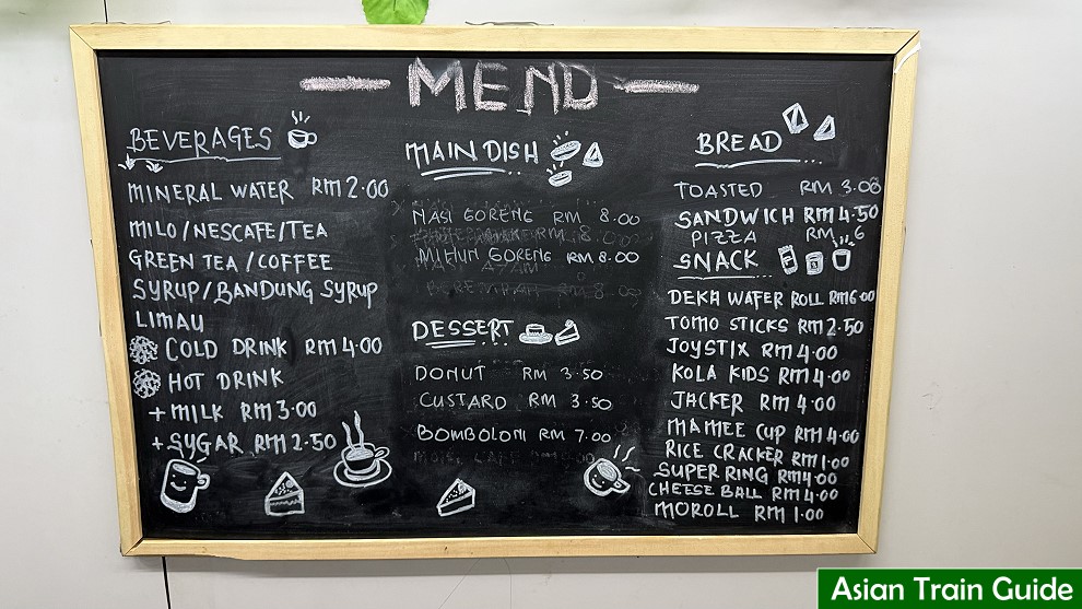 If you don’t have time for breakfast before departure, you’ll be glad to know there is a dining car. I spent most of my journey there, as it was a convenient place to type up this review. For breakfast, I had Mee Hoon Goreng, which is stir-fried vermicelli with a fried egg, and a hot coffee with milk. Later, they also served Nasi Goreng, a rice dish. The meal cost 8 ringgits, and the coffee was 3 ringgits. They have other snacks as well—hot dogs and pot noodles seemed to be popular choices.