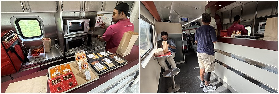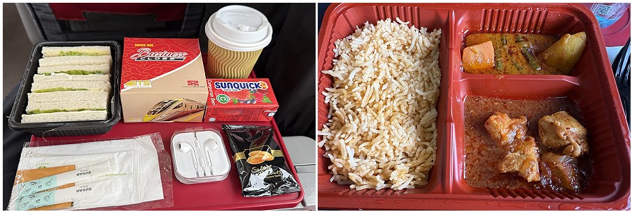 - 8:40am – Breakfast: Served after Sungai Buloh Station: Sandwich, fruit juice, coffee/tea, and salted peanuts.