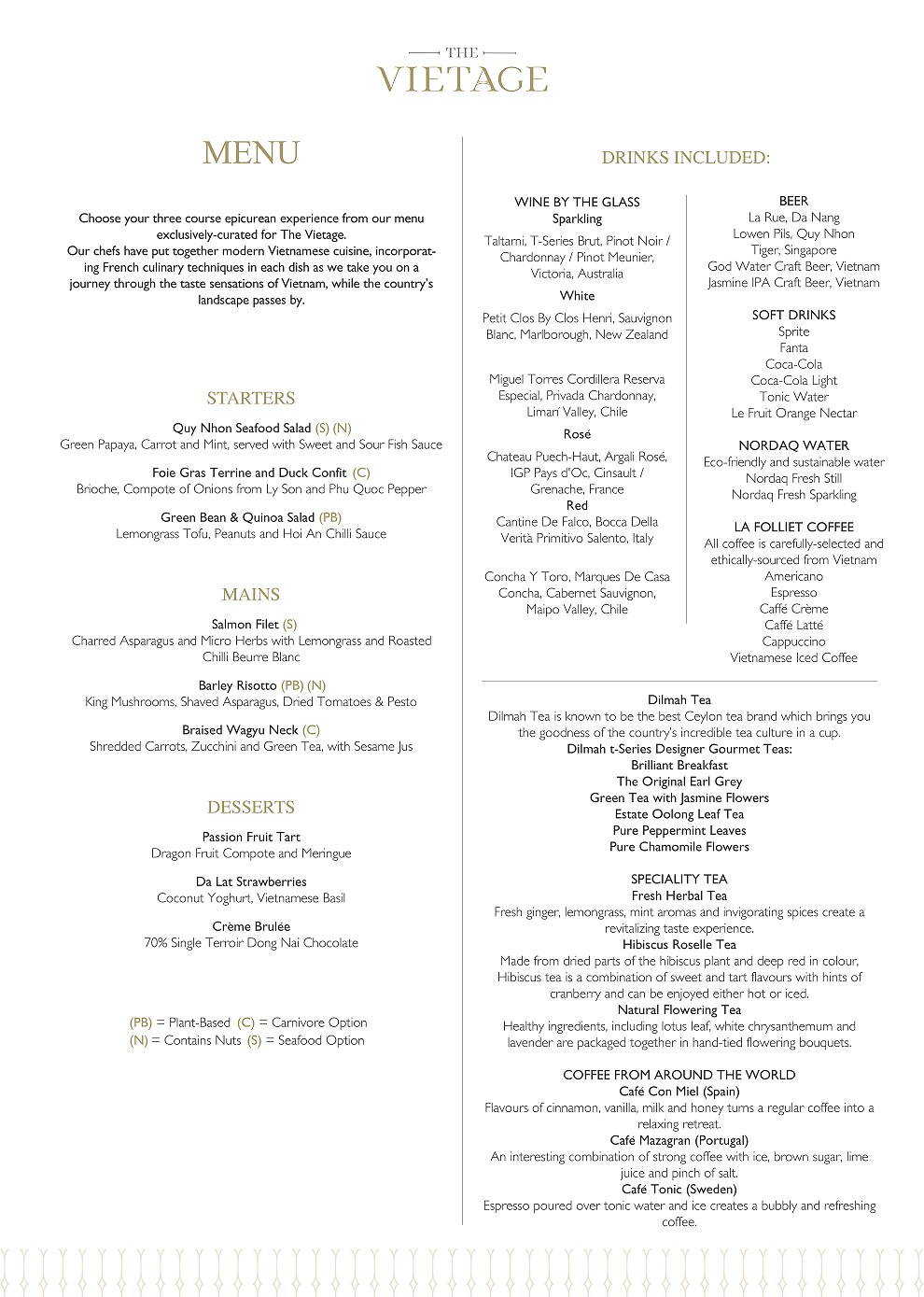 Menu onboard The Vietage