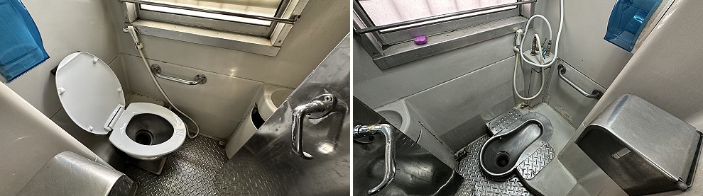 Each carriage has two toilets. One is Asian squat style and one is Western seat style. Both have washbasins but there are also two washbasins outside. The squat toilet also has a cold water shower. A good tip when booking your berth is not to have one the toilet end! This is because people don’t always shut the doors and so that end can get a bit smelly.